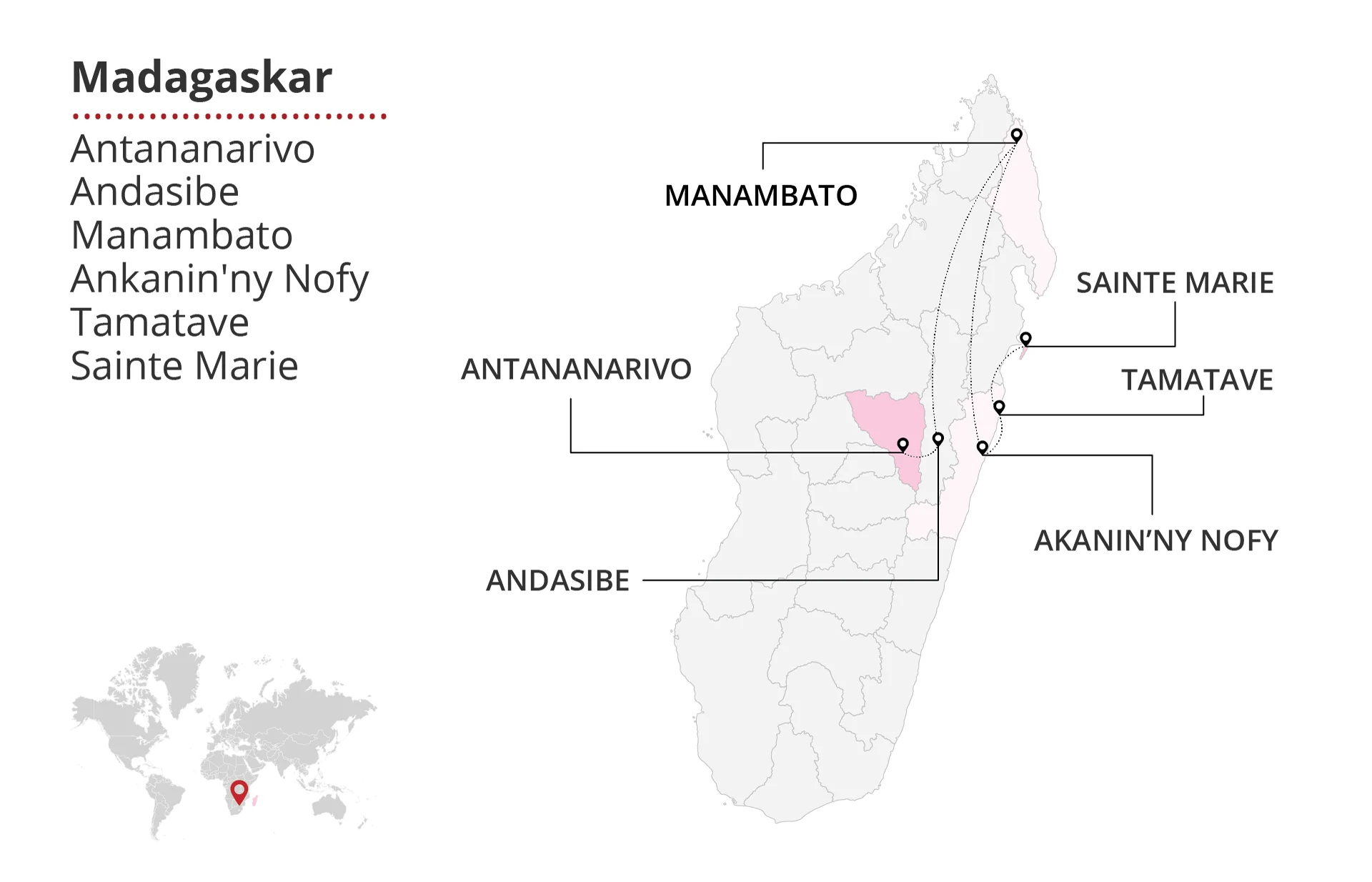 Madagaskar, büyüleyici doğal güzellikleri, eşsiz biyolojik çeşitliliği ve zengin kültürel mirasıyla dünyanın en dikkat çekici destinasyonlarından biridir. Bu tur, sizleri Madagaskar'ın başkenti Antananarivo'dan başlayarak Andasibe'nin yağmur ormanlarına, Manambato'nun huzur veren göllerine, Ankanin'ny Nofy'nin (Rüya Evi) eşsiz doğasına, Tamatave'nin canlı liman şehrine ve Sainte Marie'nin büyüleyici adasına götürecek unutulmaz bir yolculuğa davet ediyor.